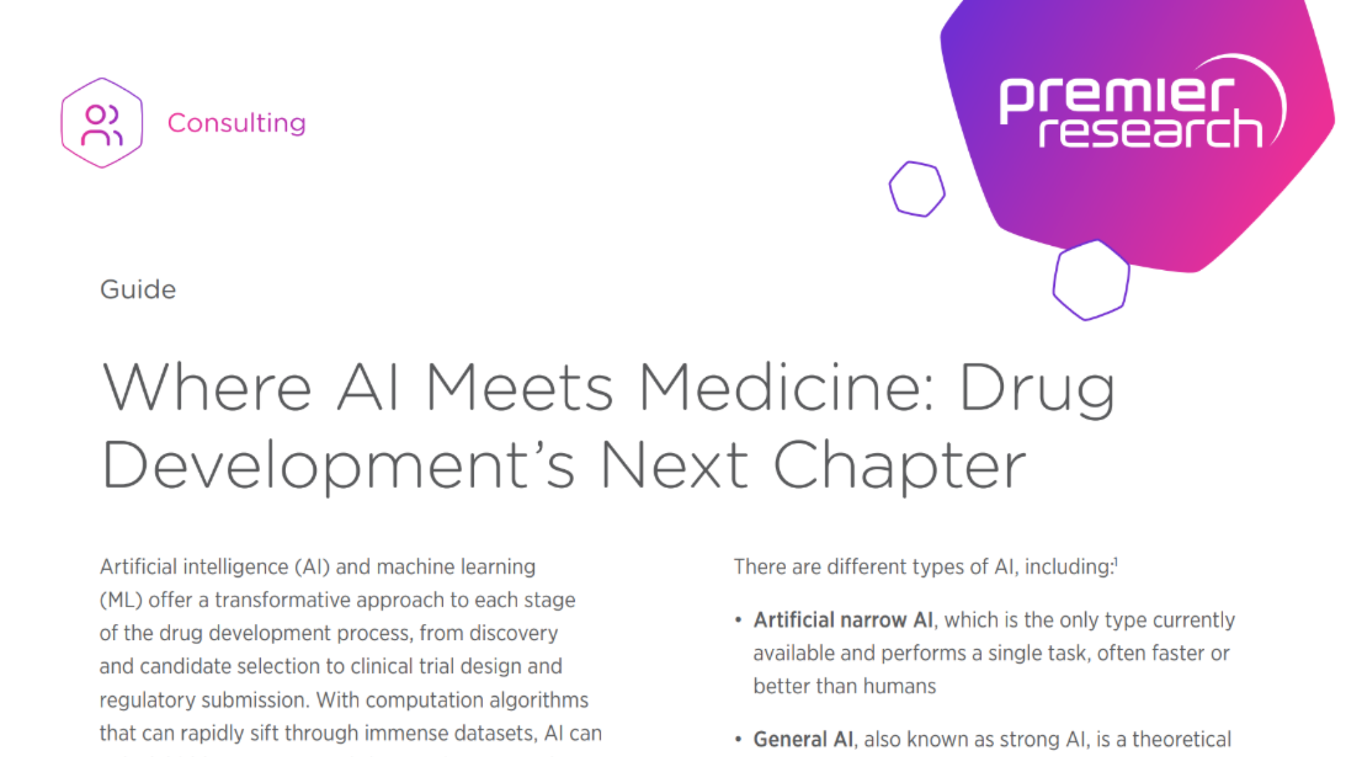 Download our comprehensive guide to explore how AI is being applied across key stages of drug development—and what it takes to implement these technologies responsibly. The guide examines emerging use cases in drug discovery, clinical trial design, and regulatory submission. It also offers insight into current regulatory expectations and industry standards, while addressing the challenges of ethical implementation, model validation, and data bias.