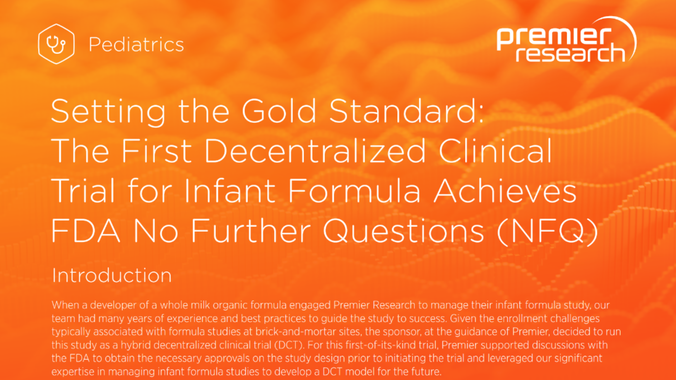 This case study shows how Premier Research designed and executed the first predominantly decentralized infant formula trial, partnering with the FDA to align on study design and ultimately achieving “No Further Questions” (NFQ). The hybrid model improved recruitment, reduced caregiver burden, and supported high-quality data collection.
