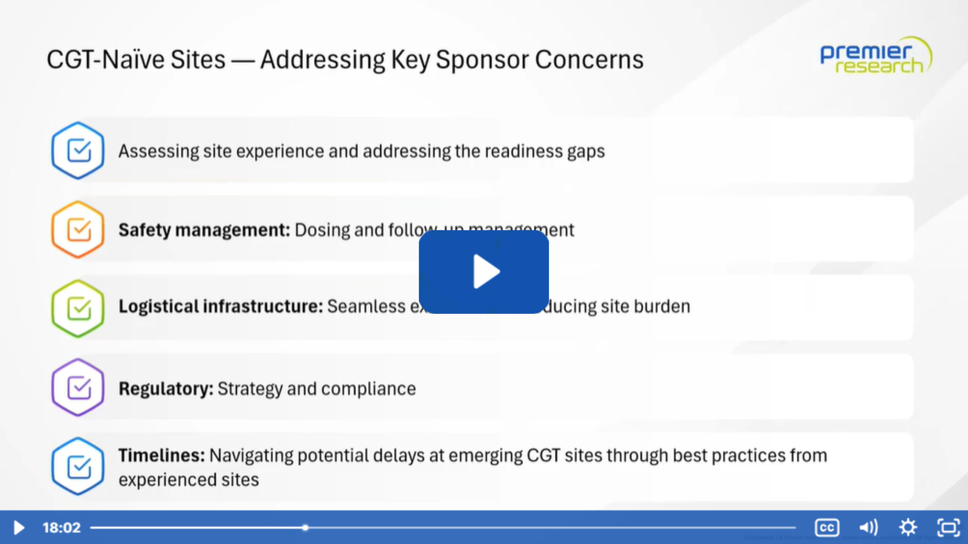 This webinar brings together perspectives from a sponsor, CRO, clinical site, and institutional biosafety committee (IBC) expert to explore strategies for expanding and optimizing CGT trial sites. Attendees gain insight into: